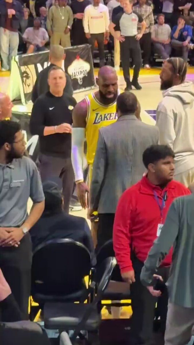 詹姆斯在第四节比赛开始前起身离开替补席,去找A-史密斯对峙,直接警告对方搞节目效果不要牵涉自己的儿子。